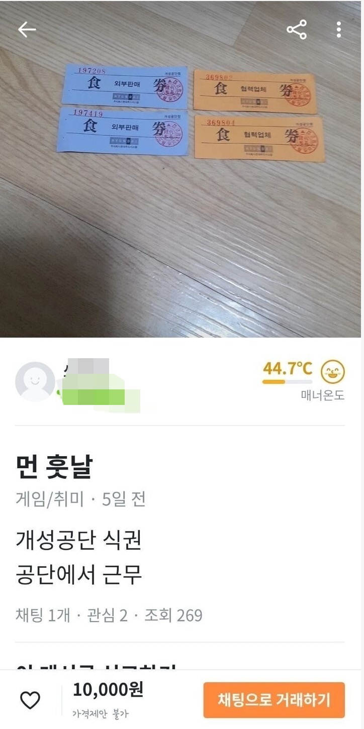 2. 개성공단 식권 팝니다.