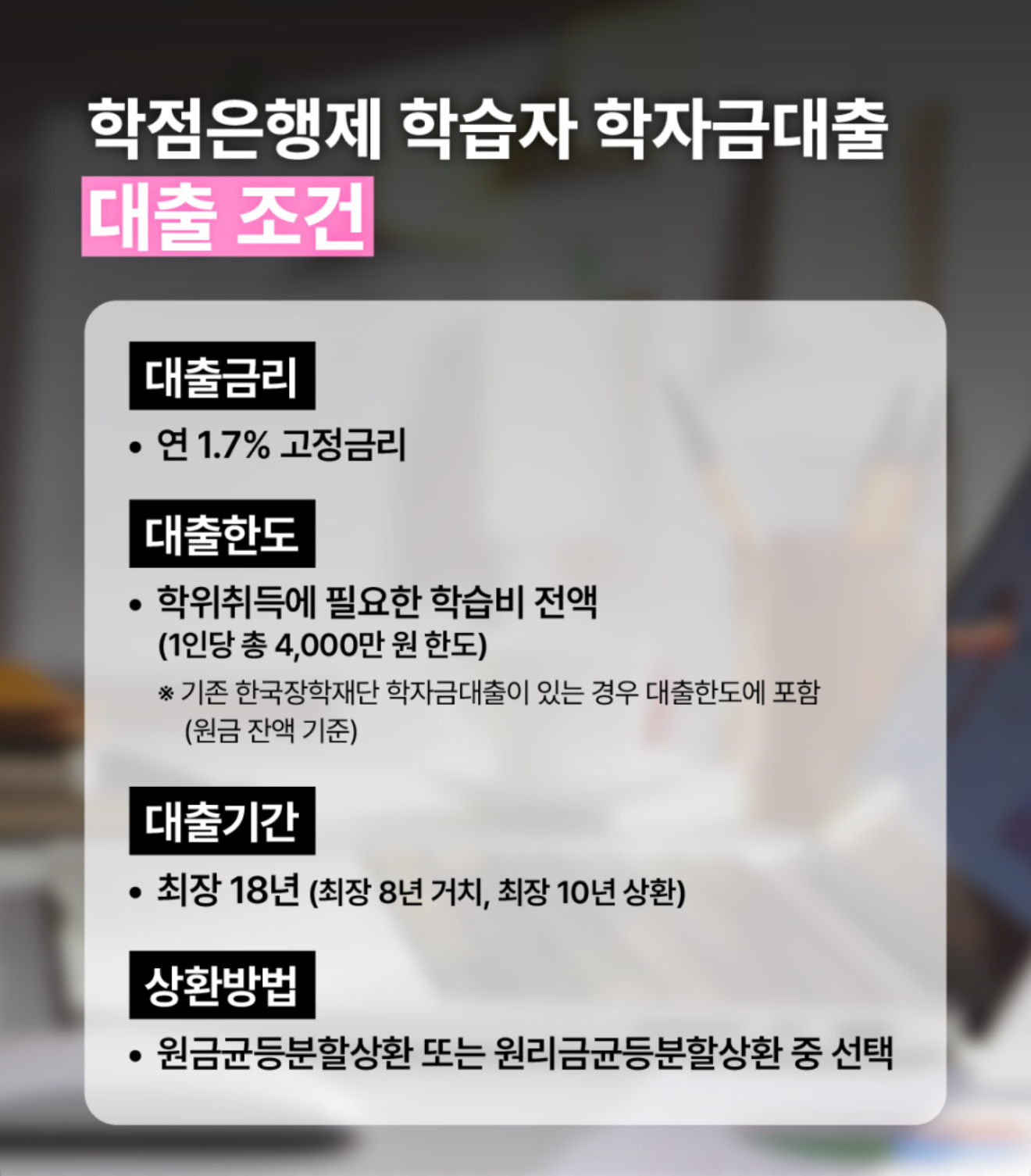 최대 18년 (최장 8년 거치, 10년 상환)