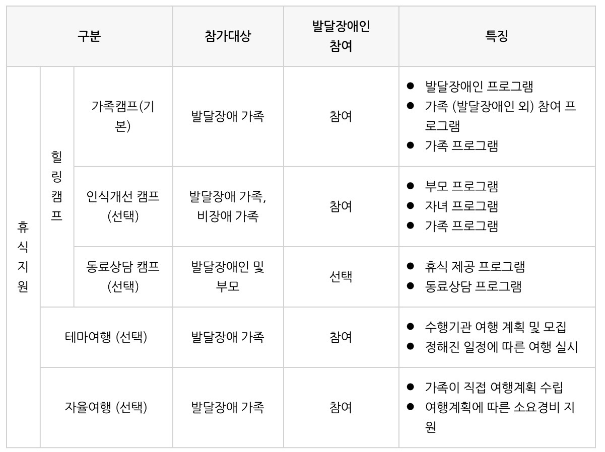 가족휴식지원사업 프로그램 내용