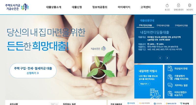 내집마련디딤돌대출은 주택도시기금에서 지원하는 주택담보대출로 무주택 서민에게 낮은 금리로 내 집 마련 비용을 대출해 드립니다.
