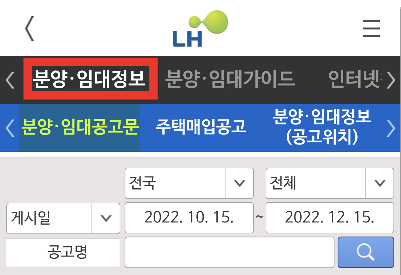LH청약센터에 올라오는 개별 공고들을 보고 신청하면 됩니다.