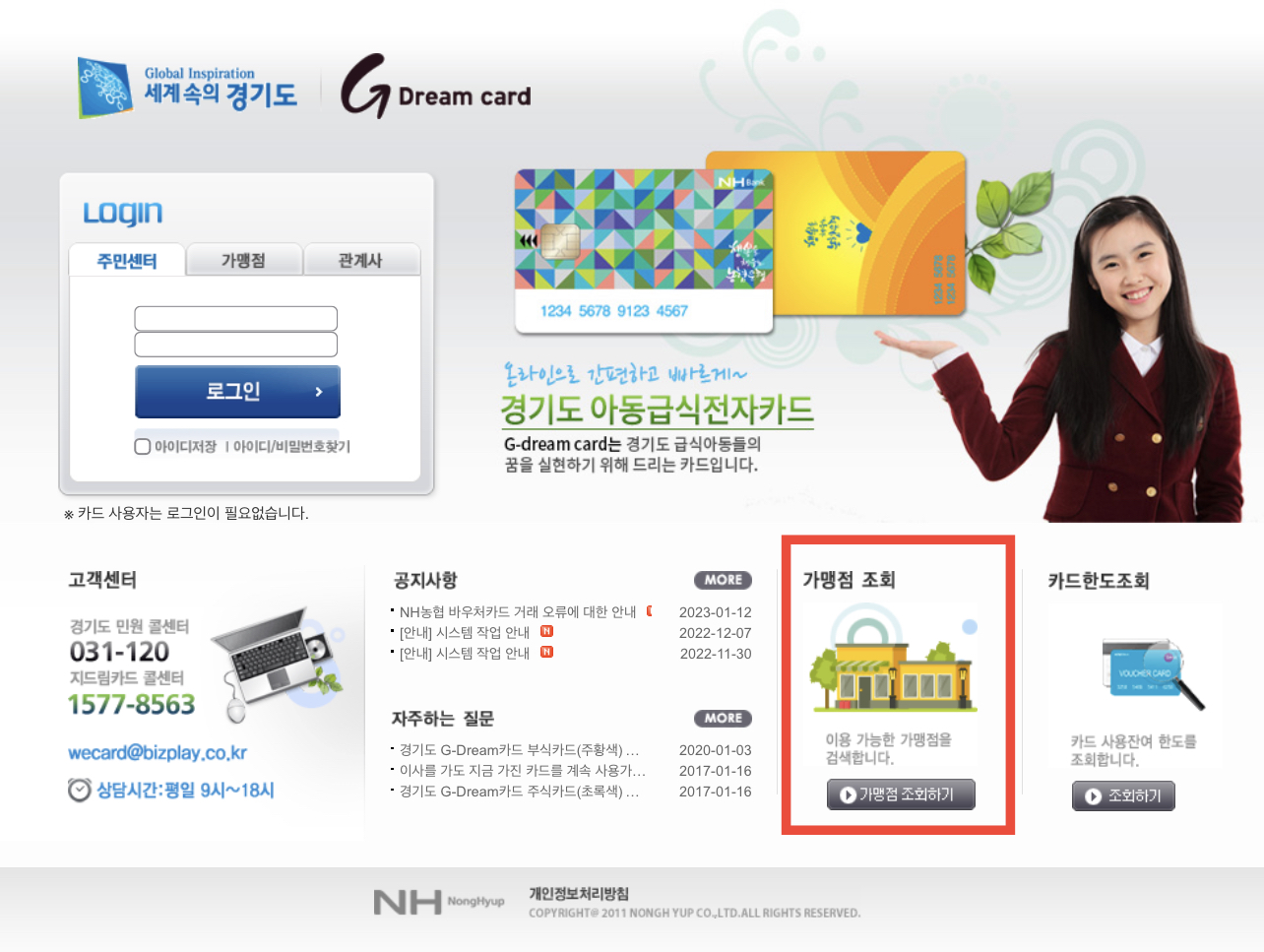경기도 급식카드 잔액조회 사이트 바로가기 출처