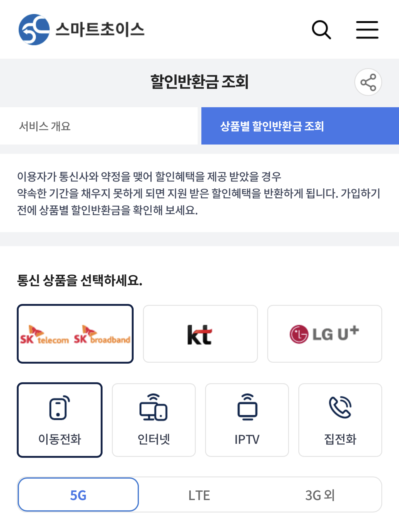 통신사의 이용 약정기간을 다 채우지 못하고 해지할 경우 발생하는 할인반환금을 조회할 수 있는 서비스입니다.
