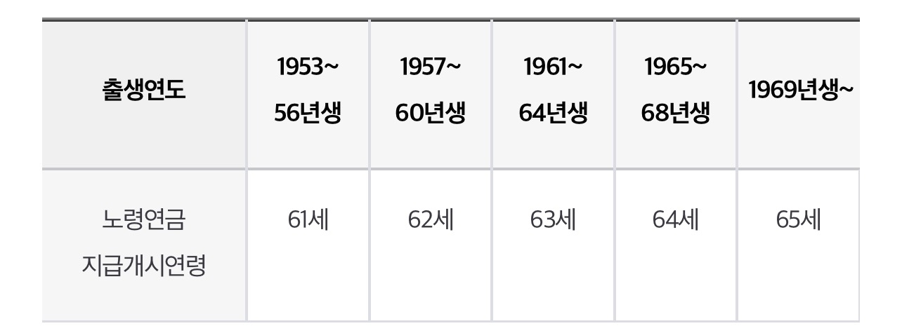 ③ 분할연금 수급권자 본인이 출생연도별 지급개시연령(하단 "출생연도별 분할연금 지급개시연령" 참조)이 될 것