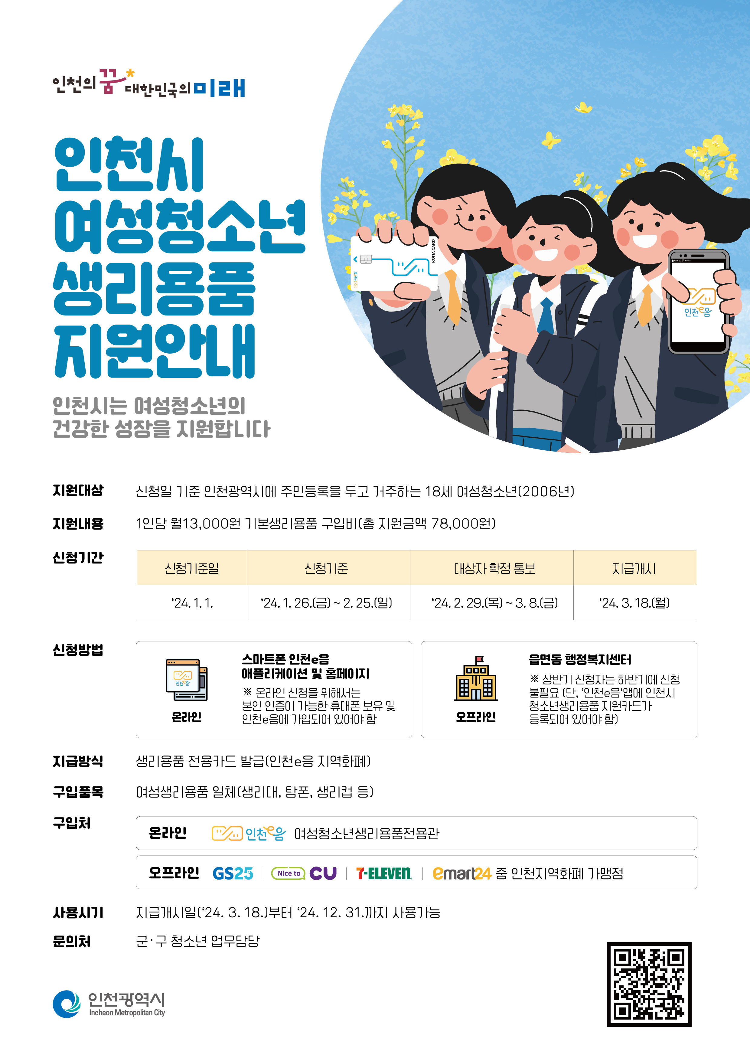 신청일 기준 인천광역시에 주민등록을 두고 거주하는 18세 여성청소년(2006년생)