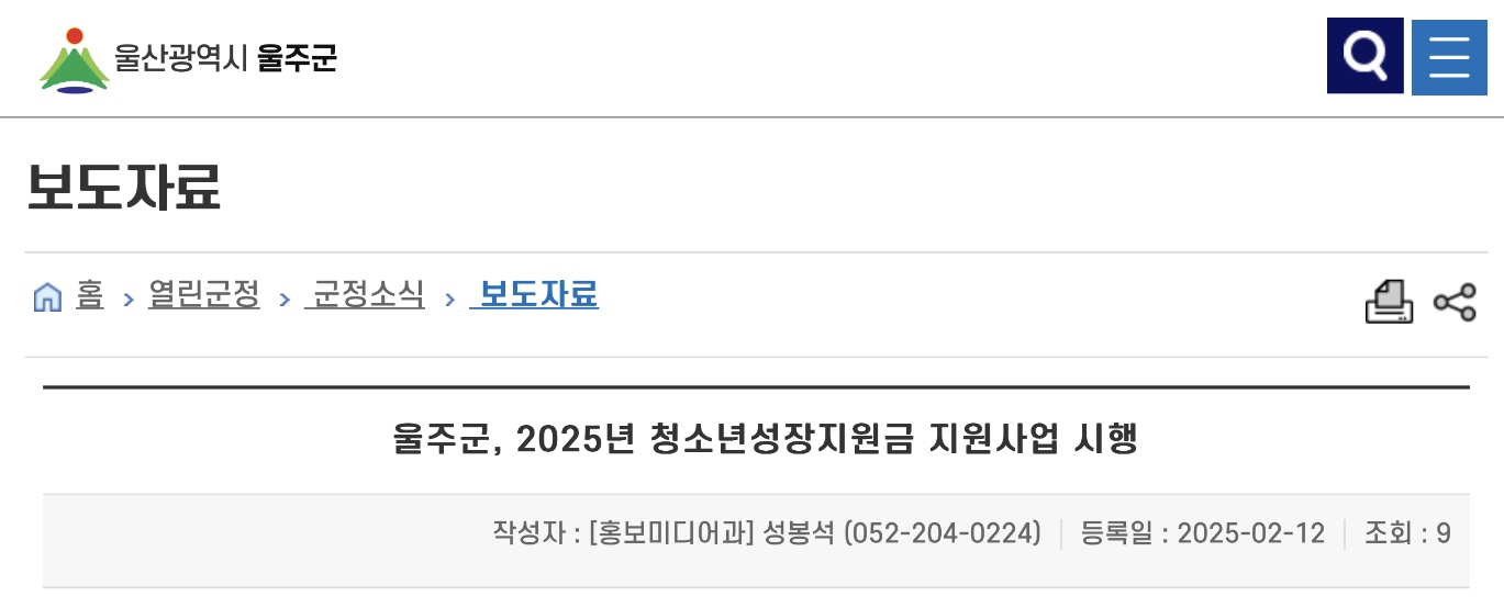 울주군 청소년 성장지원금 신청 시 제출서류 등 상세내용은 울주군청 홈페이지 일반공고 게시판에서 확인할 수 있습니다.