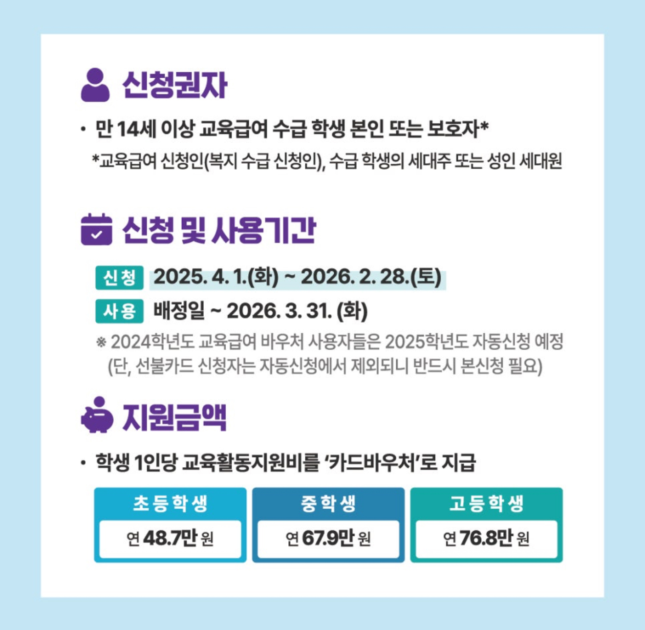 ※ 2024학년도 교육급여 바우처 사용자들은 2025학년도 자동 신청 예정