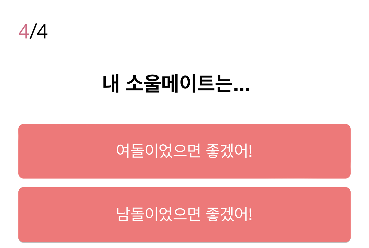 그리고 내 소울메이트였으면 하는 아이돌이 남자인지 여자인지 선택하시면 결과가 나오게 됩니다.