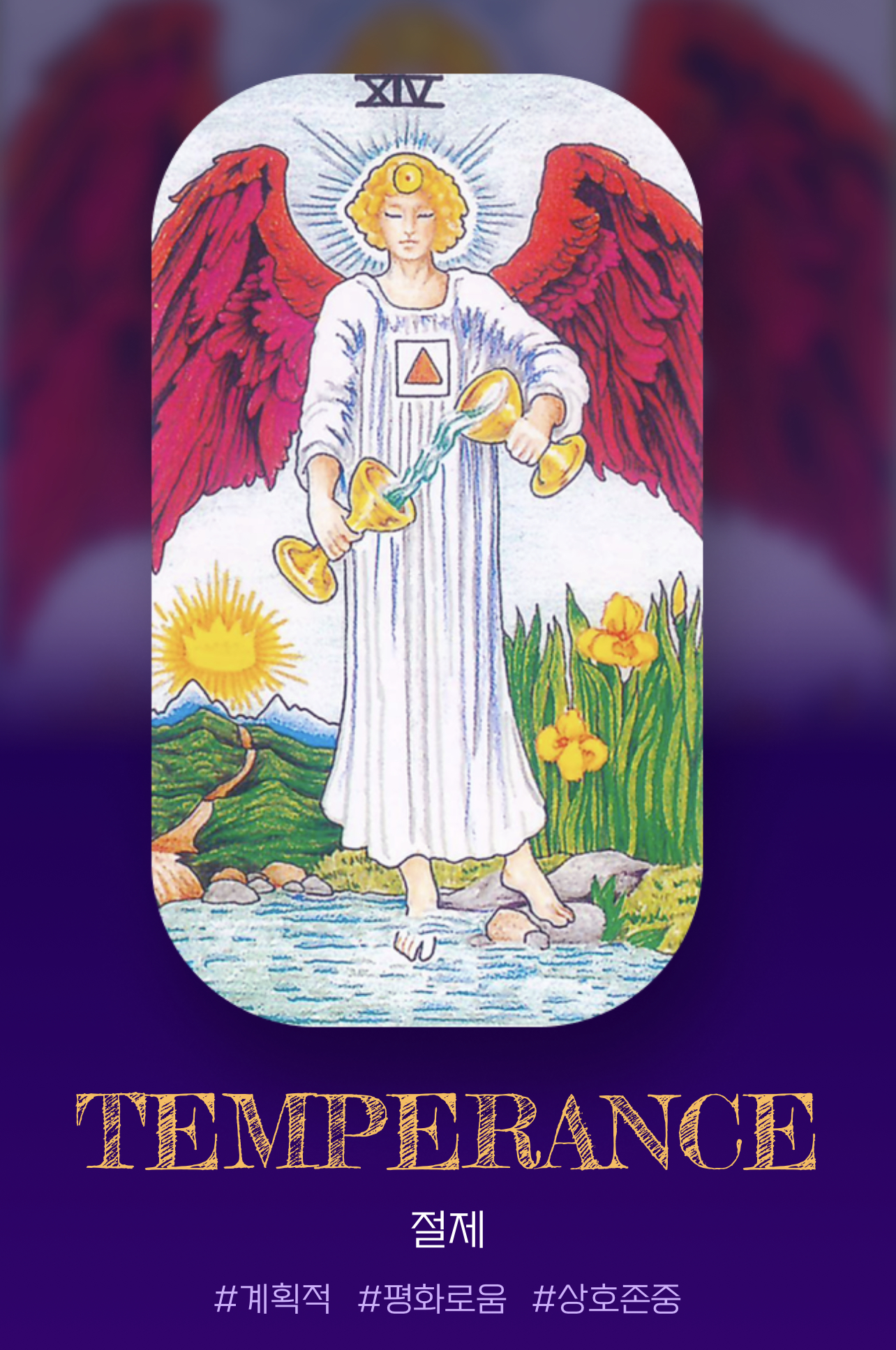 절제 카드는 주변 사람과 좋은 관계를 유지하는 상호 존중적인 평화로운 사람입니다.