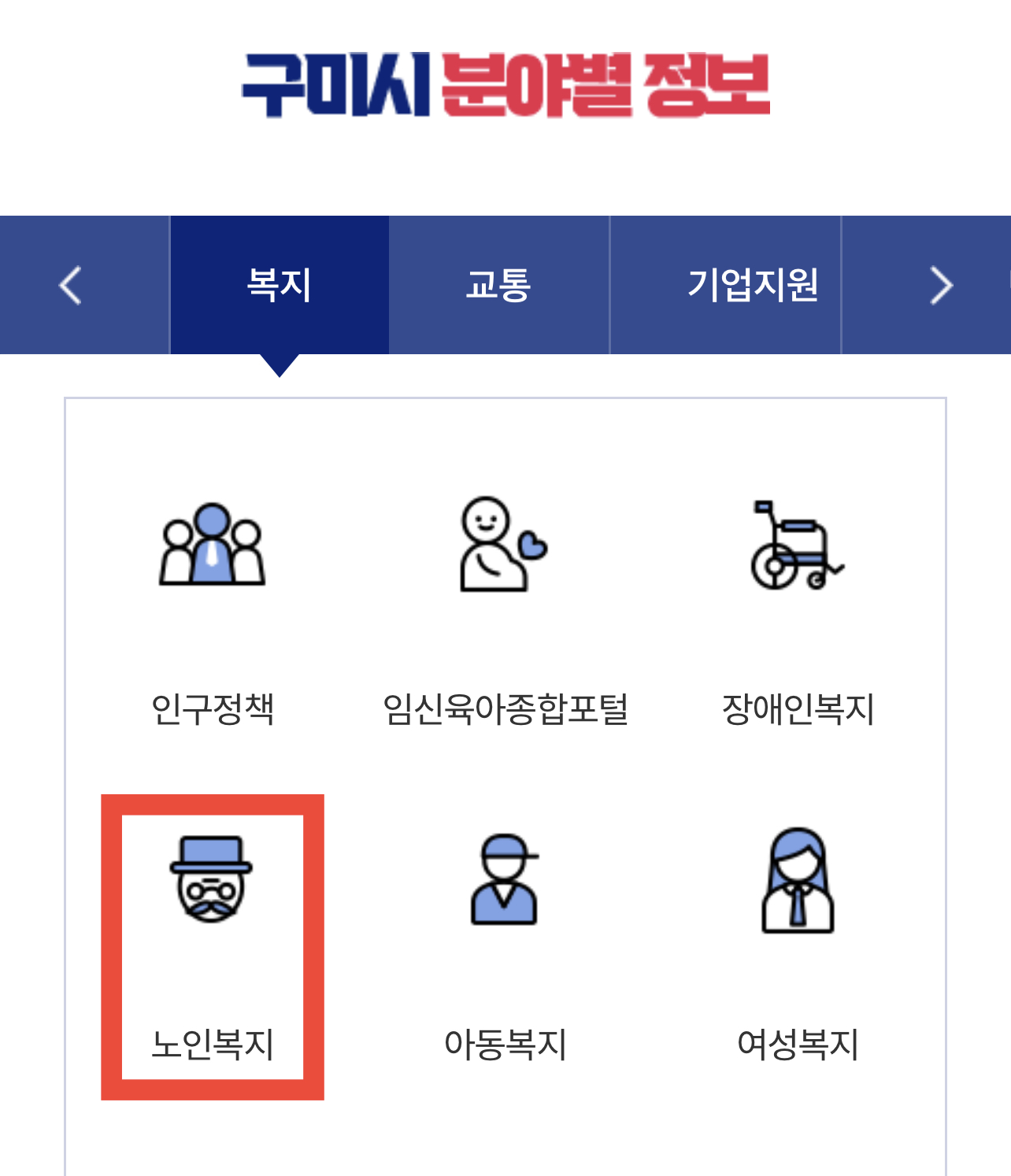 정부에서는 각종 노인 복지를 위해 여러가지 지원 정책을 마련하고 있으며 뿐만 아니라 지자체에서도 노인 복지를 위해서 여러가지 지원정책을 마련하고 있는데 구미시에는 어떤 노인 복지 지원정책 정보를 안내하고 마련하는지 이에 자세한 안내드리겠습니다.