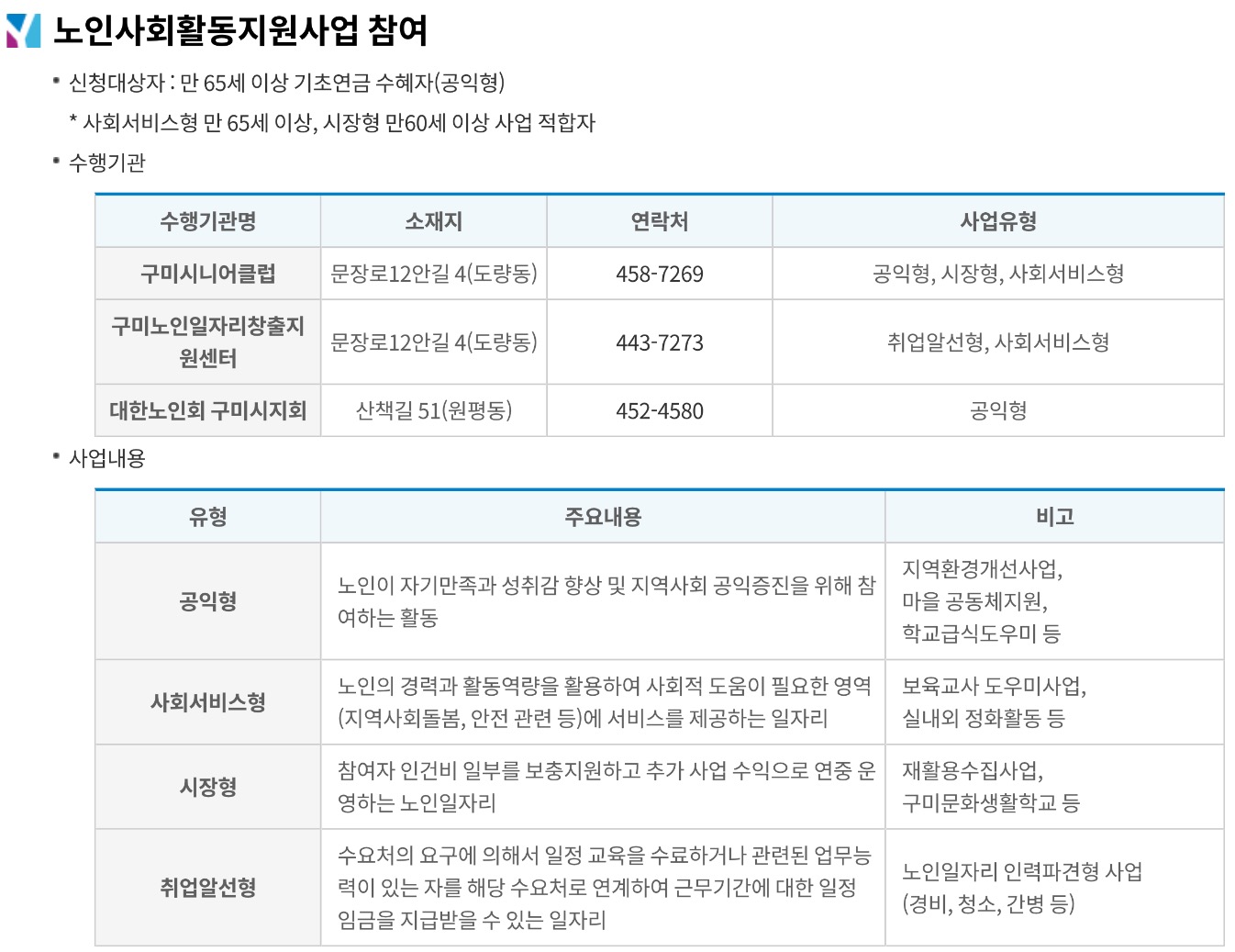 구미시에서 제공하는 노인복지 관련 정보는 다음과 같습니다.