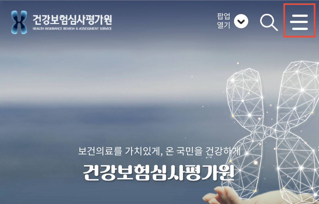 먼저 건강보험심사평가원 사이트를 접속하시길 바랍니다.