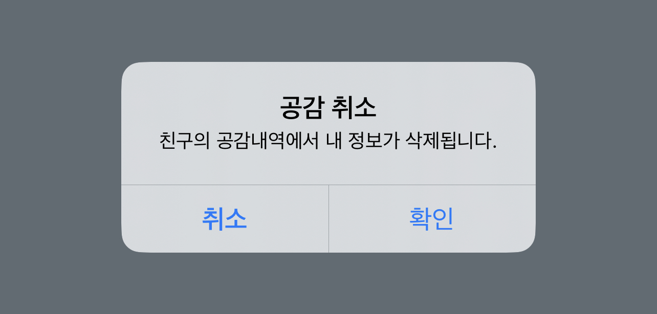 하지만 직접 핸드폰 두개로 실험해본 결과 내가 상대방 공감을 취소한 경우 알림은 별도로 생기지 않았습니다.