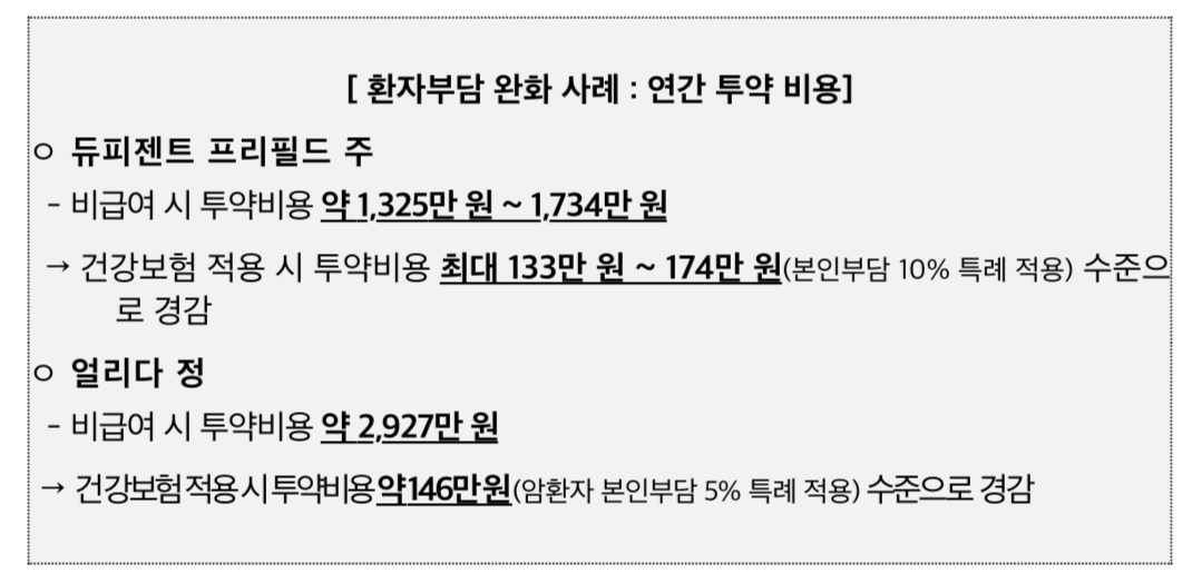 참고로 보건복지부는 또한, 약제(듀피젠트 프리필드주)의 급여범위 확대에 맞춰 중증 아토피성 피부염 소아환자의 산정특례 적용 기준도 확대한다고 밝혔습니다.