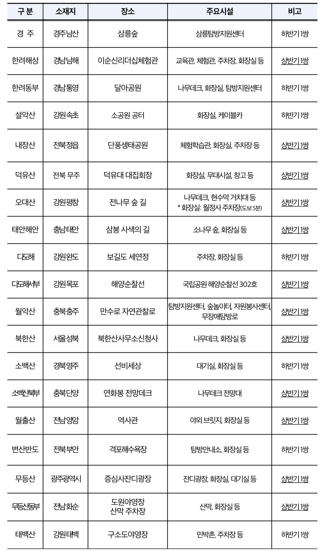 국립공원 친환경 숲속 결혼식 운영시설 현황