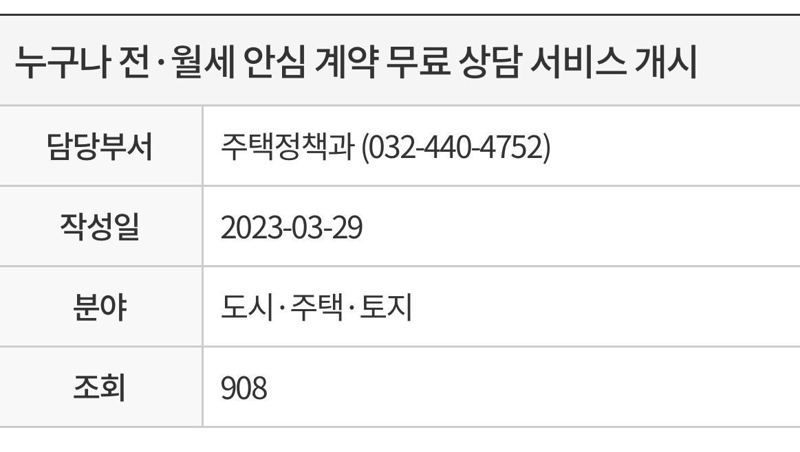 인천시 전세 및 월세 안심 계약 무료 상담 서비스 사업 정리
