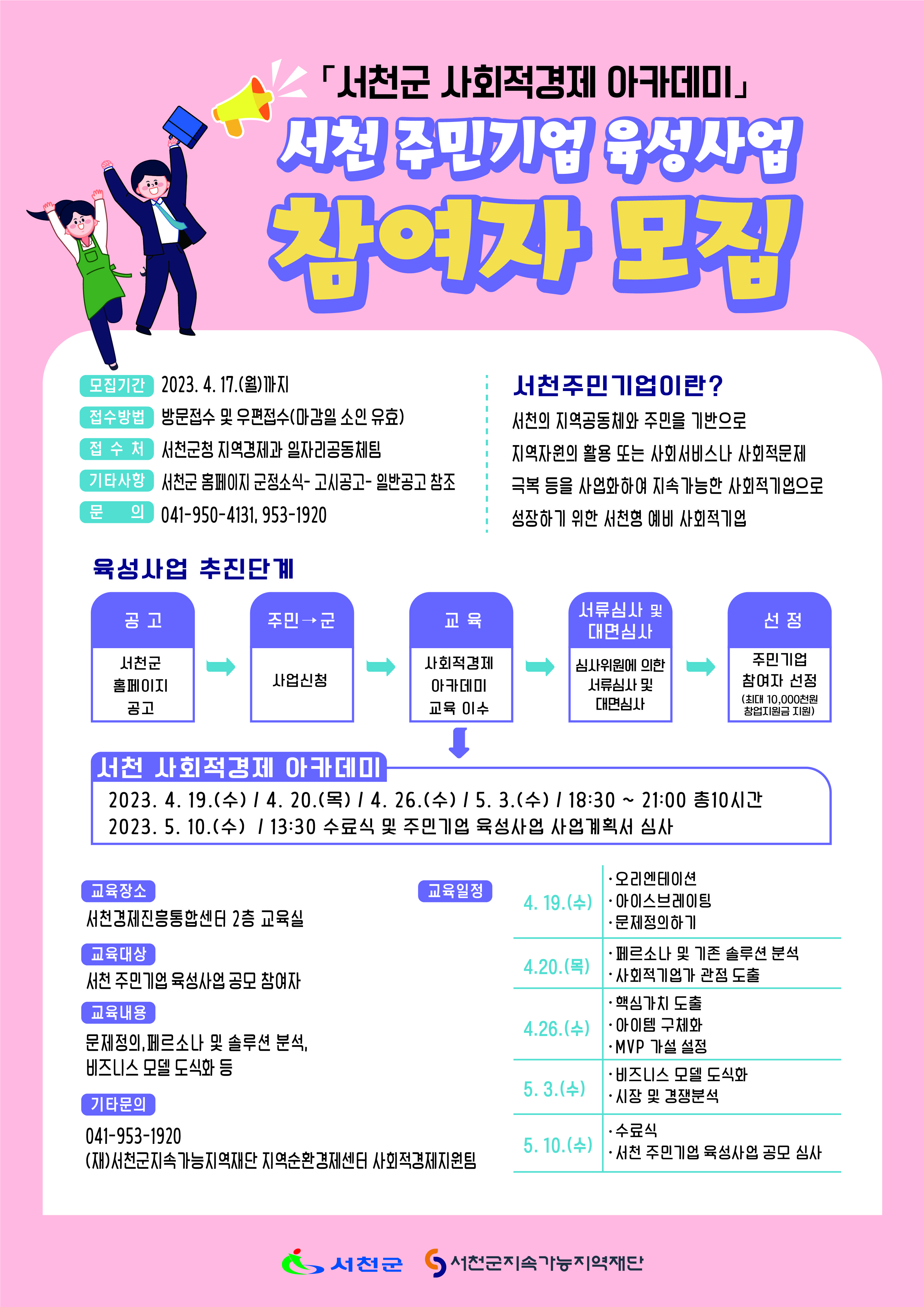 - 접수장소 : 서천군 서천읍 군청로 57 서천군청 지역경제과 일자리공동체팀