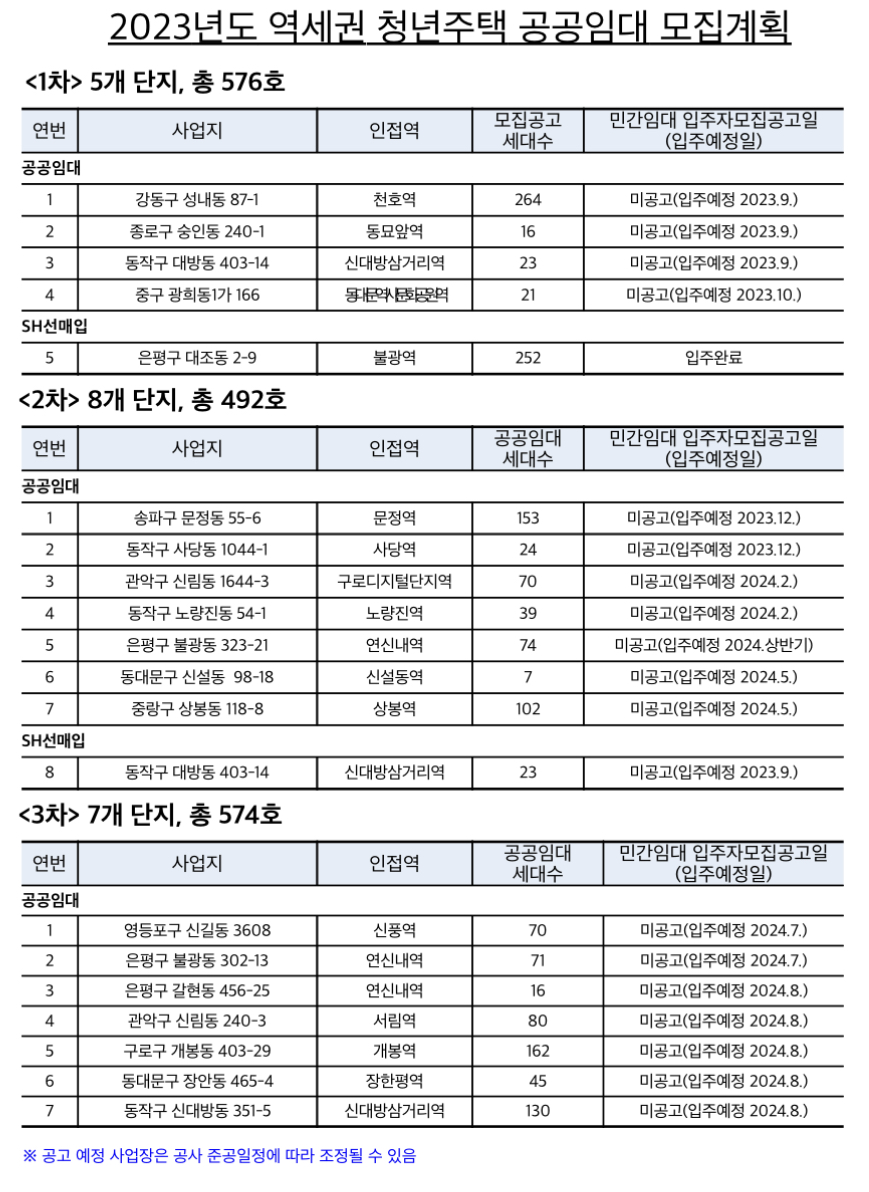 서울시는 2023년 3월 31일 2023년 첫 ‘역세권청년주택 공공임대 부문’ 입주자 모집을 공고하고 2023년 4월 12일~4월 14일 3일 간 온라인 청약을 진행한다고 밝혔습니다.