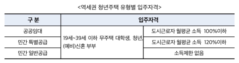서울시 역세권 청년주택 입주 지원자격은 만 19~39세의 무주택자, 자동차 미소유인 청년 또는 신혼부부로 본인과 부모 합산 도시근로자 가구원수별 가구당 월평균 소득 100% 이하에 해당해야 하며 보다 자세한 입주자격은 모집공고문을 참고하면 됩니다.