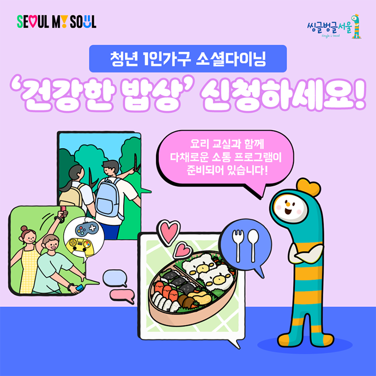 혼자 살며 끼니를 거르기 쉽거나 건강한 식사를 챙기기 힘든 청년 1인가구를 위한 서울시 소셜다이닝 ‘건강한 밥상’이 이달부터 운영에 들어간다고 밝혔습니다.