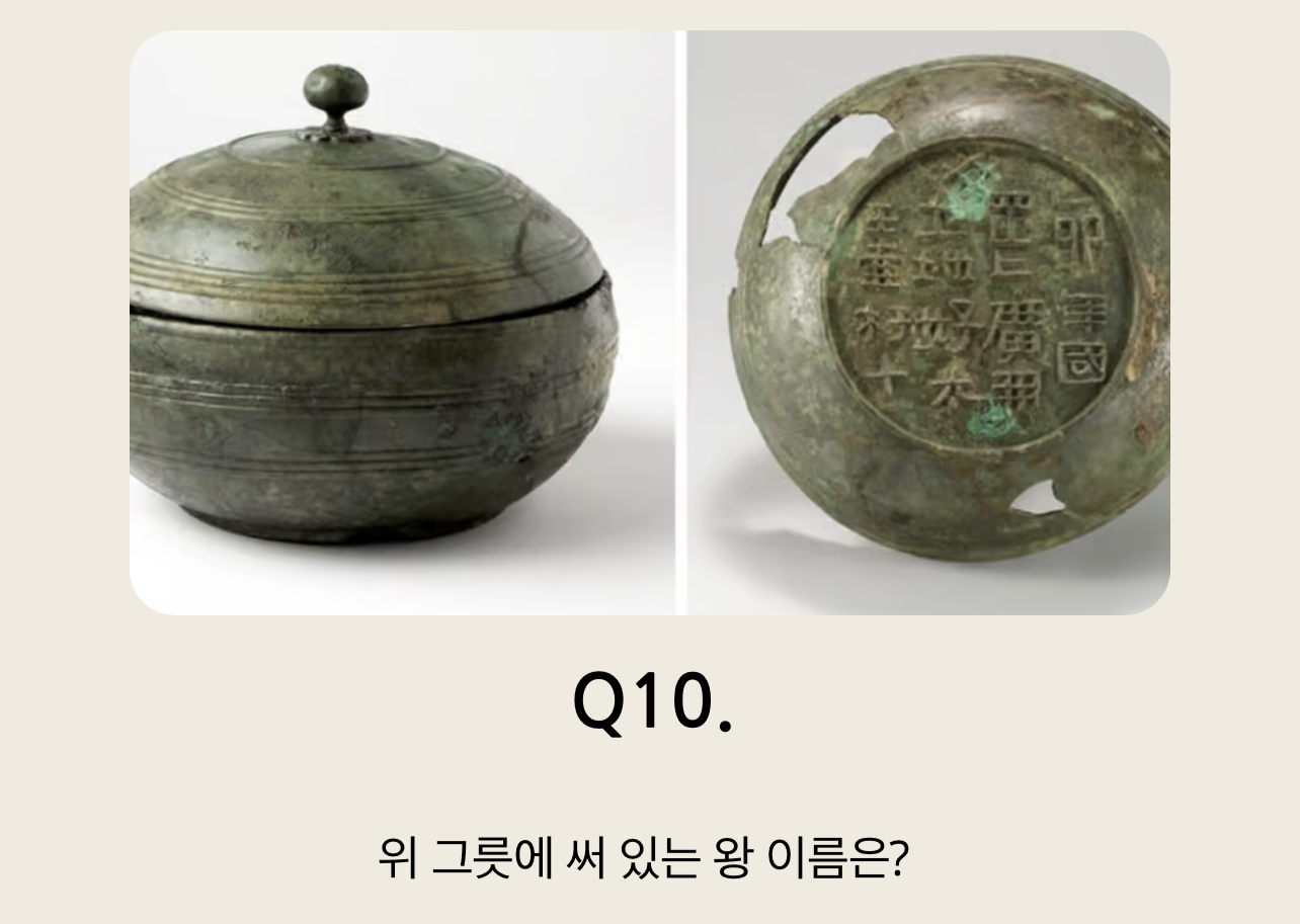 Q10. 위 그릇에 써 있는 왕 이름은?