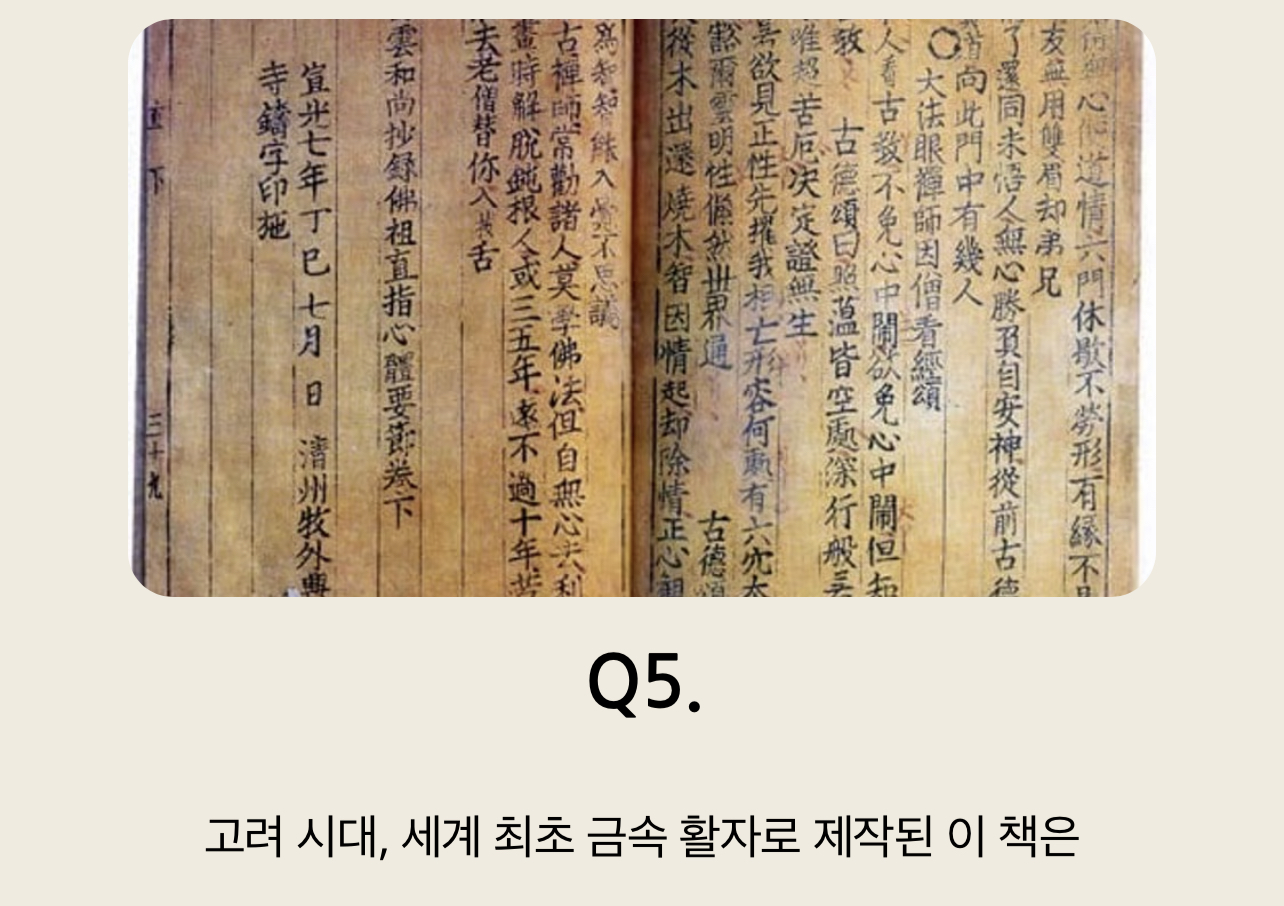 Q5. 고려 시대, 세계 최초 금속 활자로 제작된 이 책은