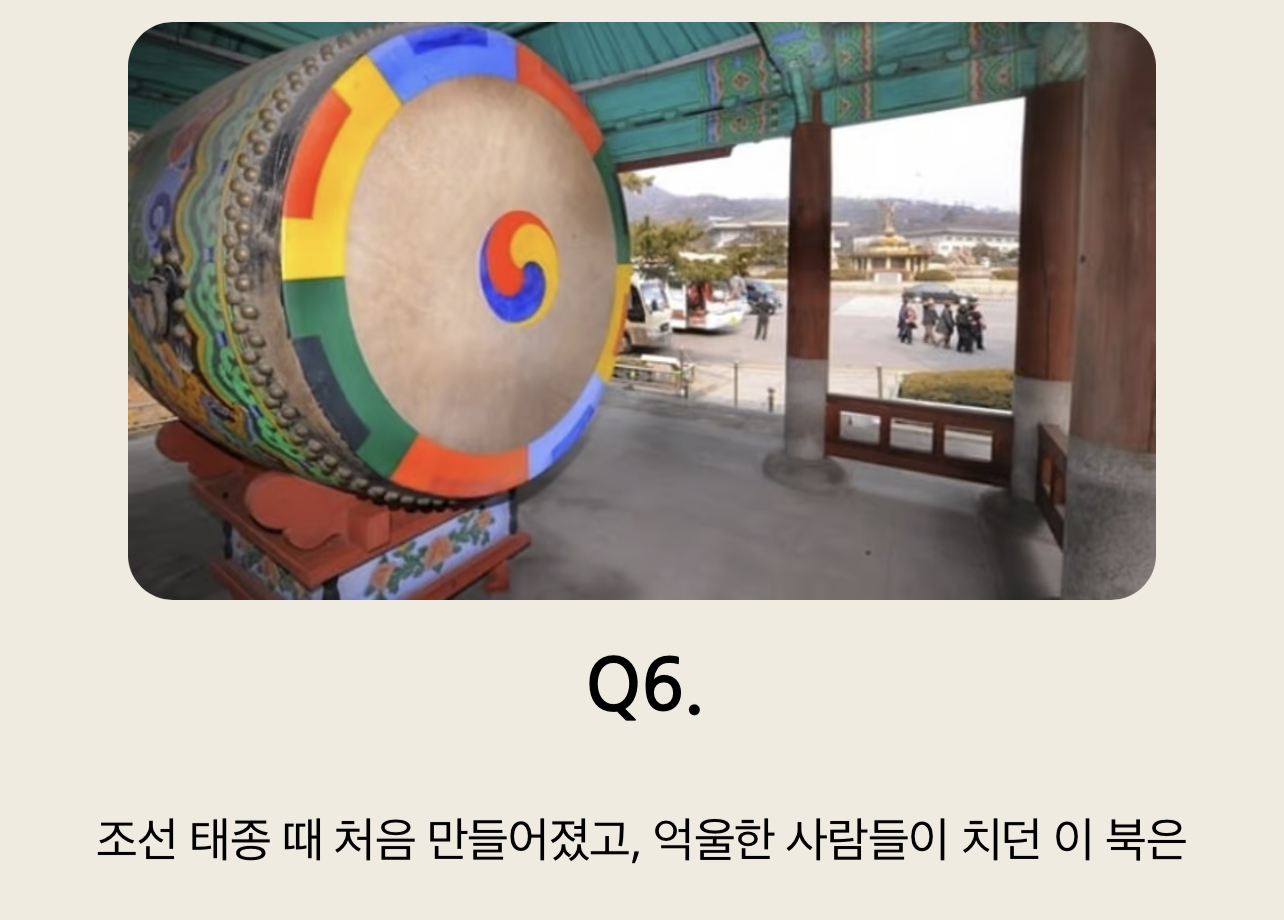 Q6. 조선 태종 때 처음 만들어졌고, 억울한 사람들이 치던 이 북은