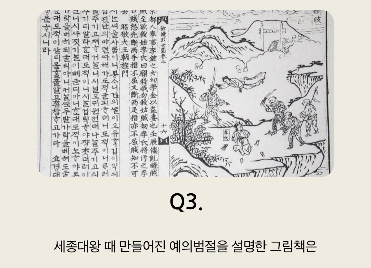 Q3. 세종대왕 때 만들어진 예의범절을 설명한 그림책은