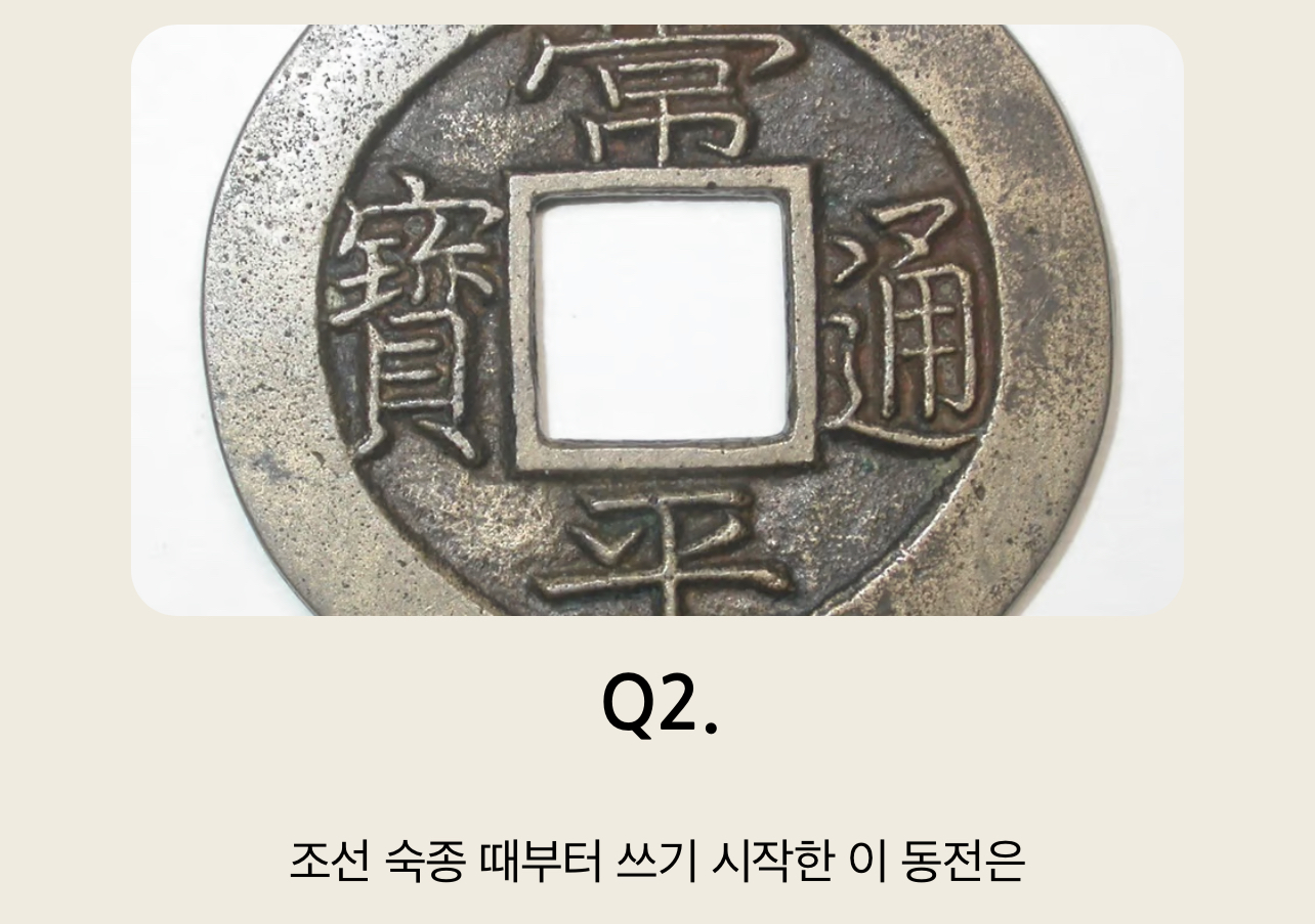 Q2. 조선 숙종 때부터 쓰기 시작한 이 동전은