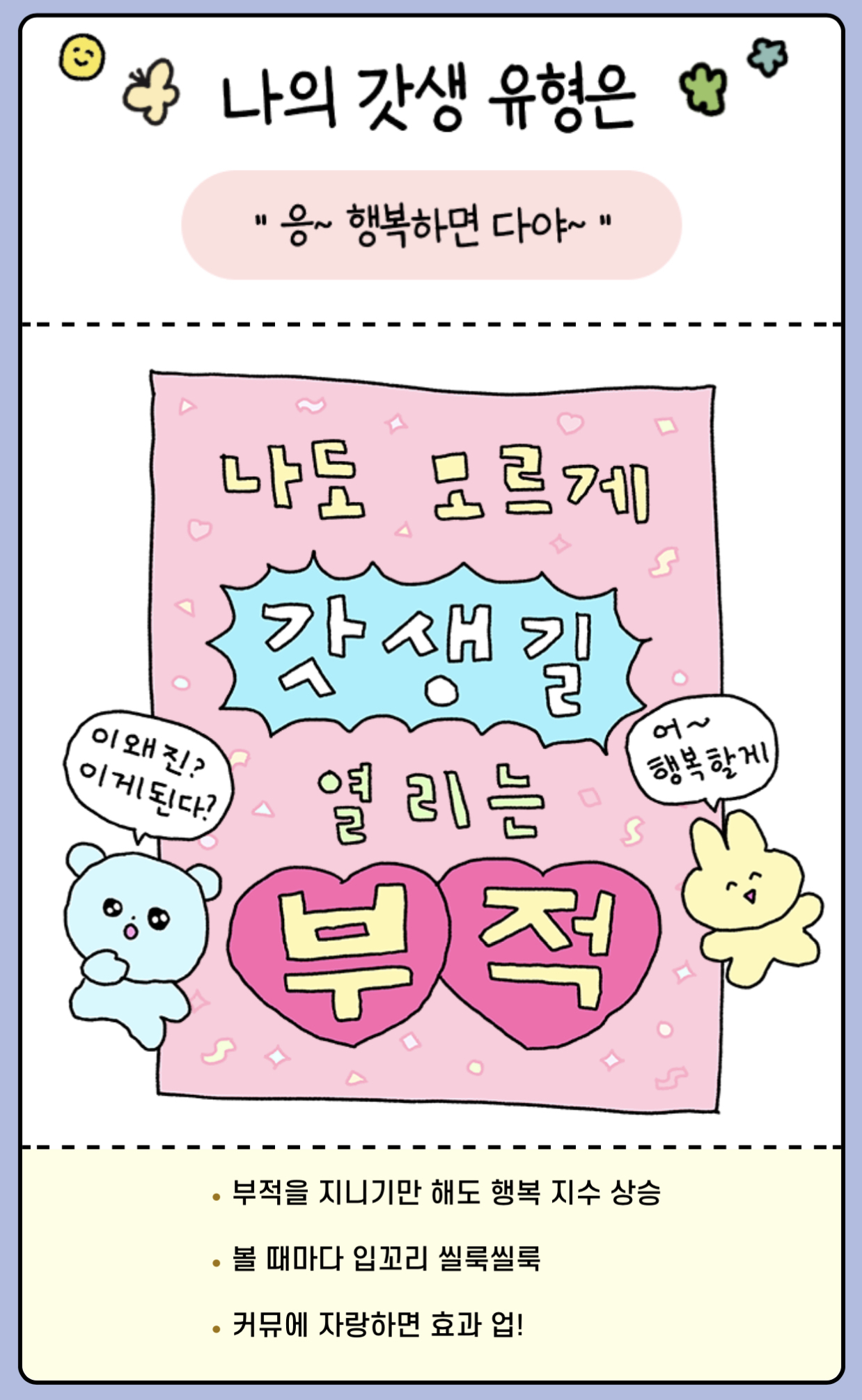 나의 갓생 유형은 “응~ 행복라면 다야~”가 나왔습니다.