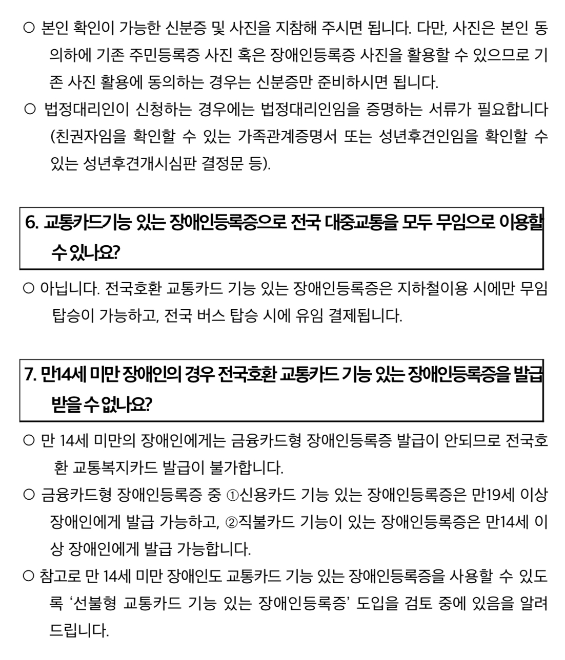 장애인 교통복지카드 자주 묻는 질문