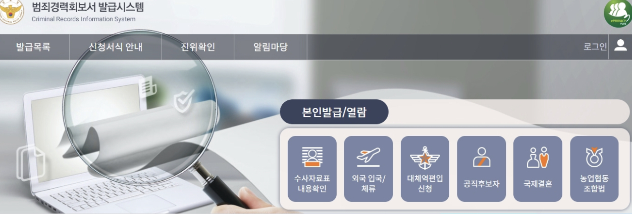 범죄경력회보서 발급시스템 홈페이지 바로가기 출처