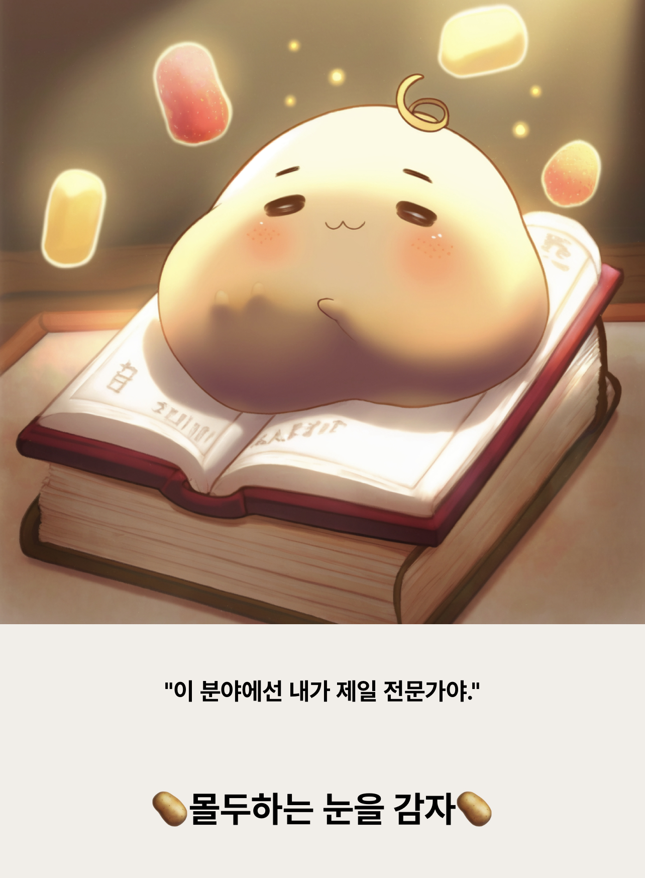 • 자신의 분야에선 전문성을 발휘하는 당신. 몰두할때 눈을 지긋이 감는 눈을 감자로 성장했어요.