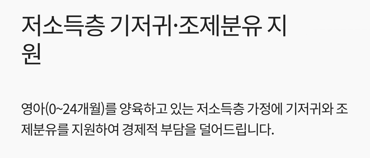 저소득층 가구의 영아(0~24개월)를 지원합니다.