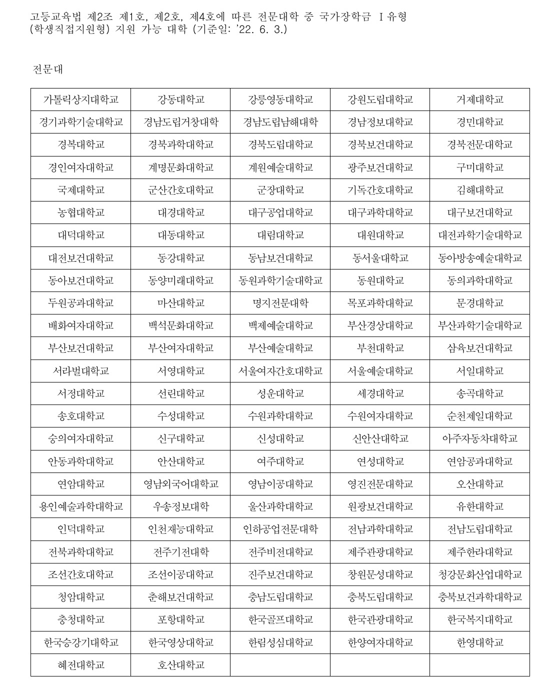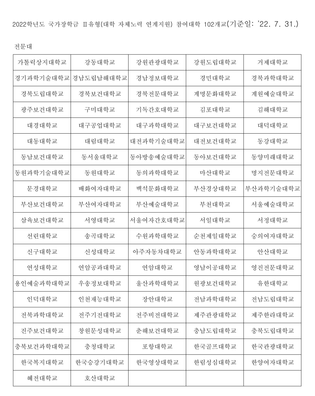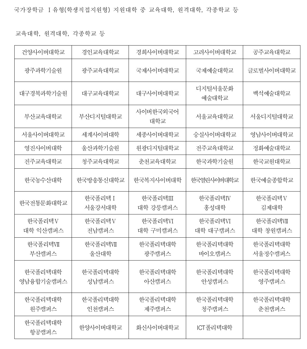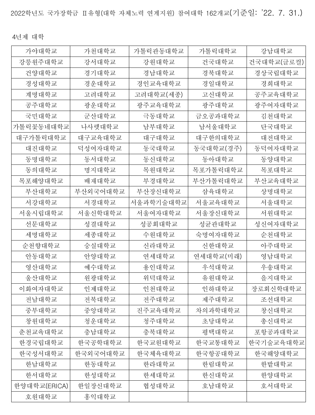 국가장학금 신청가능 대학 리스트