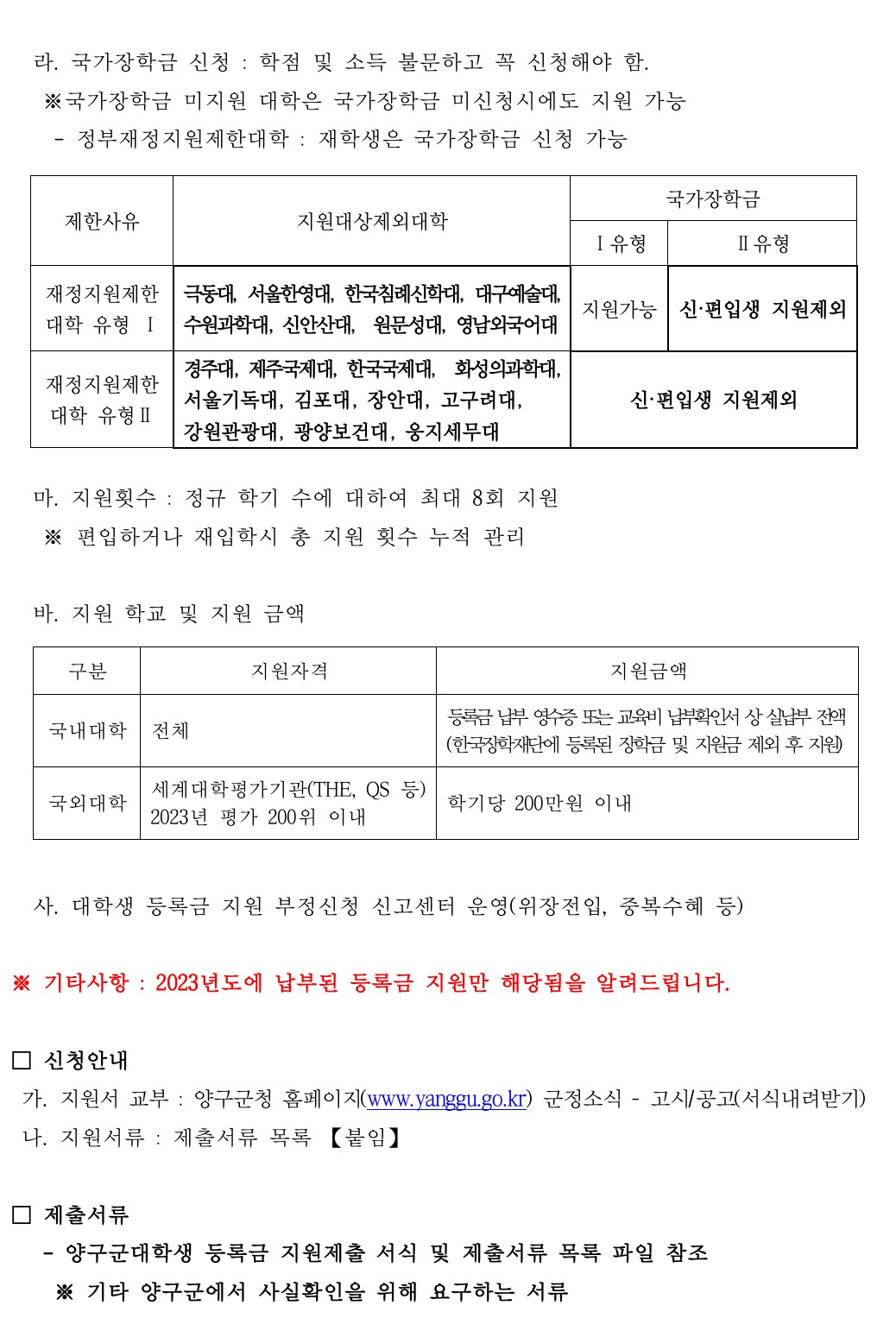 강원도 양구군은 오는 2023년 4월 17일부터 대학생 등록금 전액 지원 신청 접수를 받는다고 밝혔습니다.