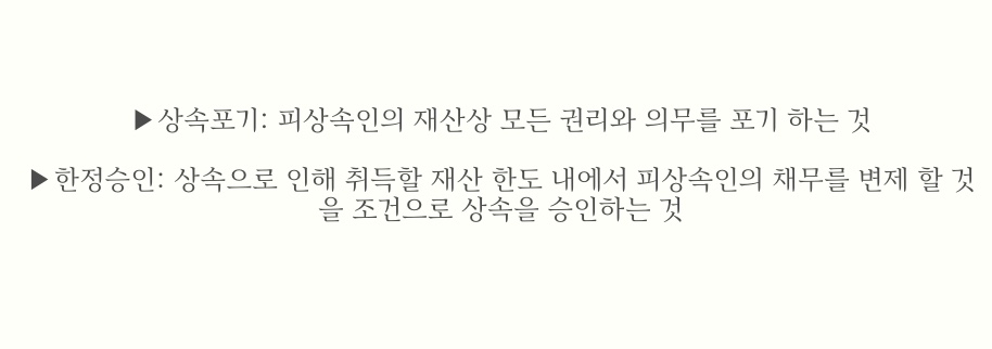 ▶상속포기: 피상속인의 재산상 모든 권리와 의무를 포기 하는 것