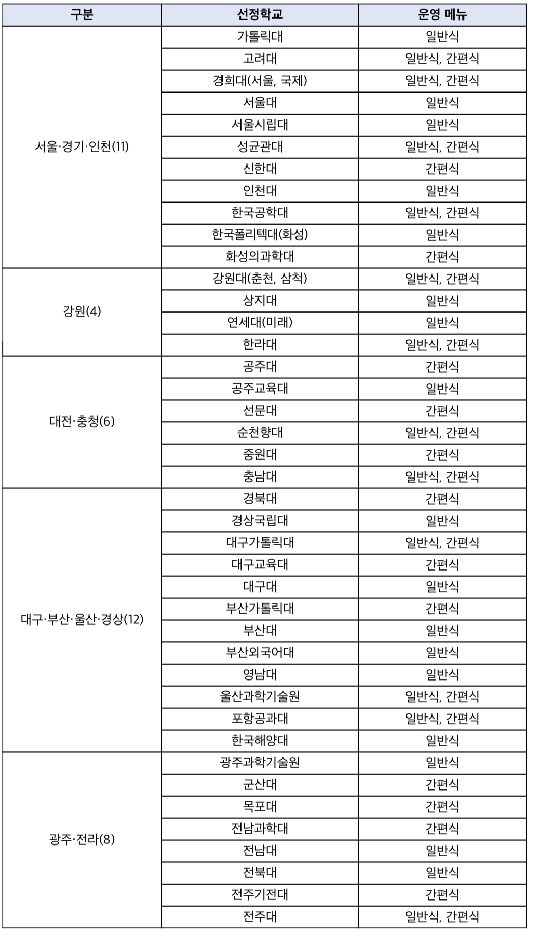 천원의 아침밥 참여대학 목록 리스트 총정리