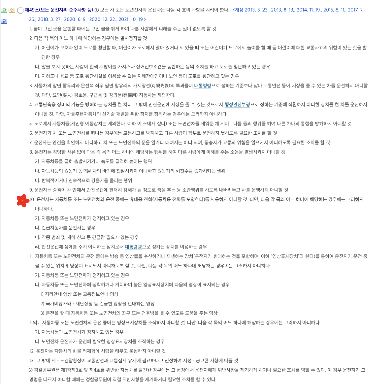다만, 휴대전화를 한 손에 들고 스피커폰을 이용하는 등의 행위는 해당되지 않는다는 점을 참고하시면 될 듯합니다.