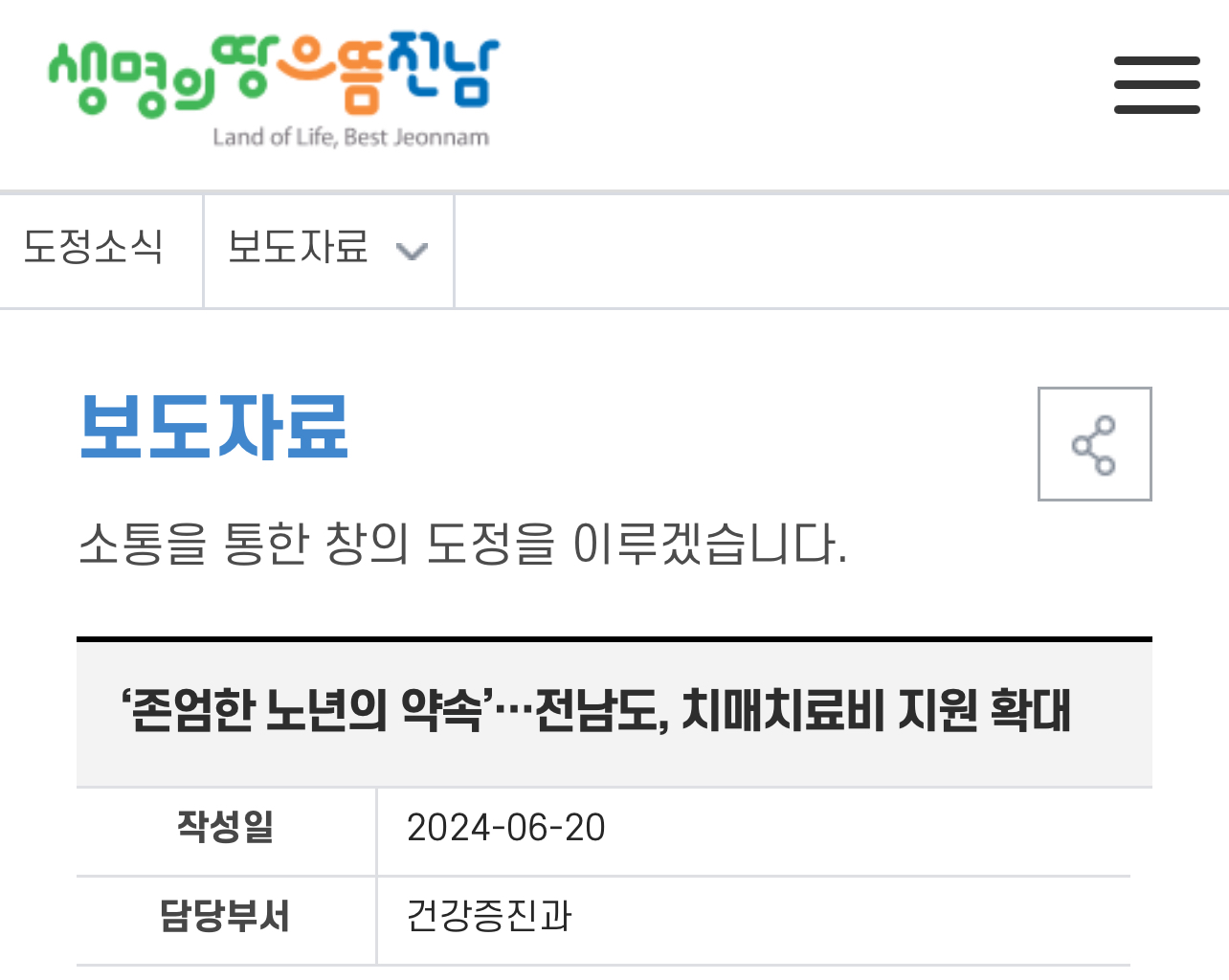 본 설명은 전라남도 홈페이지 보도자료