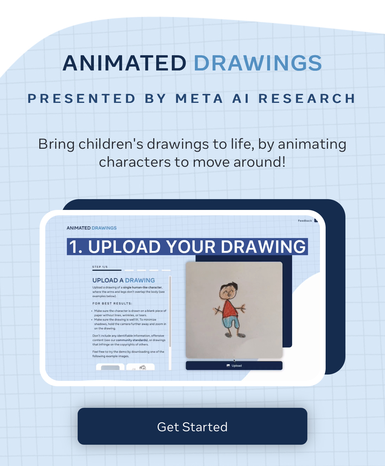 먼저 Animated Drawings(애니메이티드 드로잉) 사이트를 접속해주시길 바랍니다.