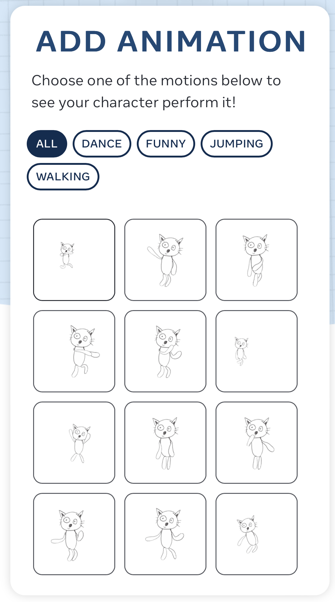 그럼 사진과 같이 정말 다양한 포즈의 애니메이션 효과를 넣을 수 있는걸 볼 수 있습니다.