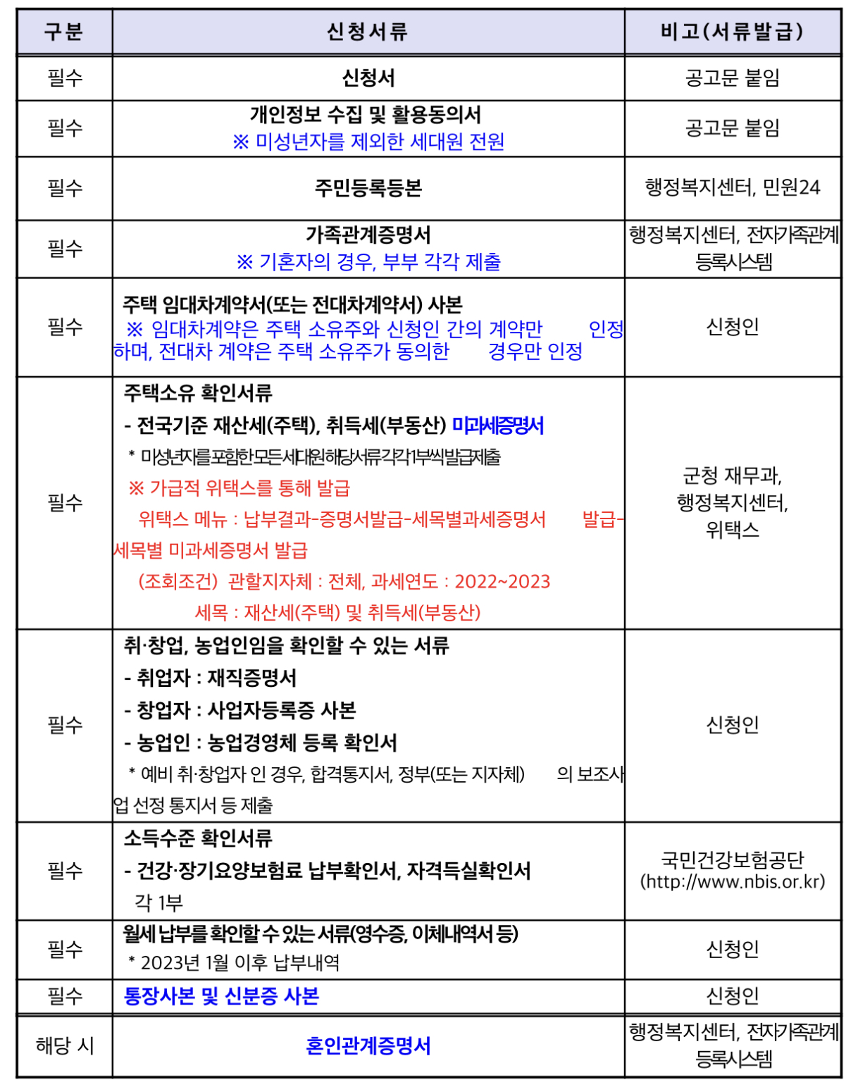 * 신청서류 상 착오, 허위, 누락 등에 따른 일체의 불이익은 신청자 책임임