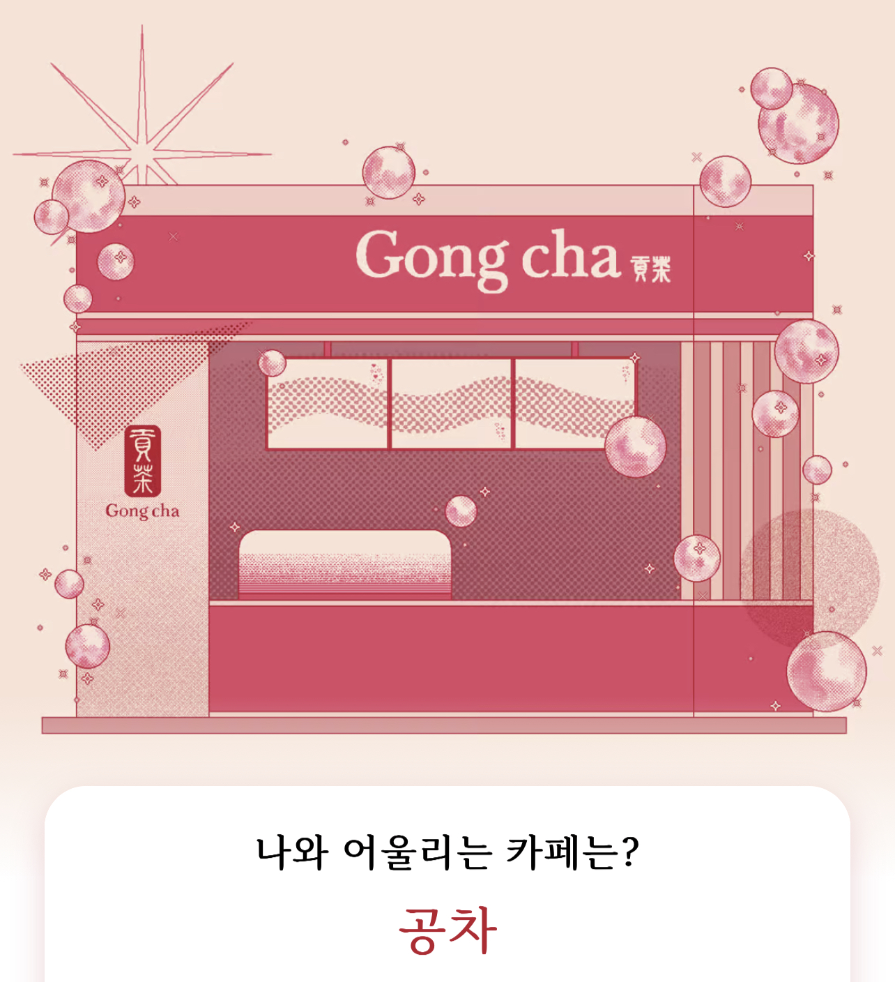 나와 어울리는 카페는 공차가 나왔습니다.