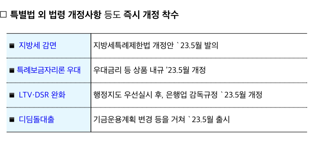 * 대출액 4억원 한도內, [LTV] (경락)낙찰가 100%, (일반주담대) 비규제70→80% / [DSR‧DTI] 적용배제 등