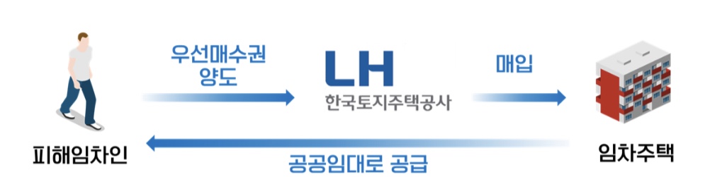 LH 등 공공주택사업자가 피해 임차인으로부터 우선매수권을 양도받아 해당 주택을 경ㆍ공매로 매입 후 공공임대로 공급합니다.