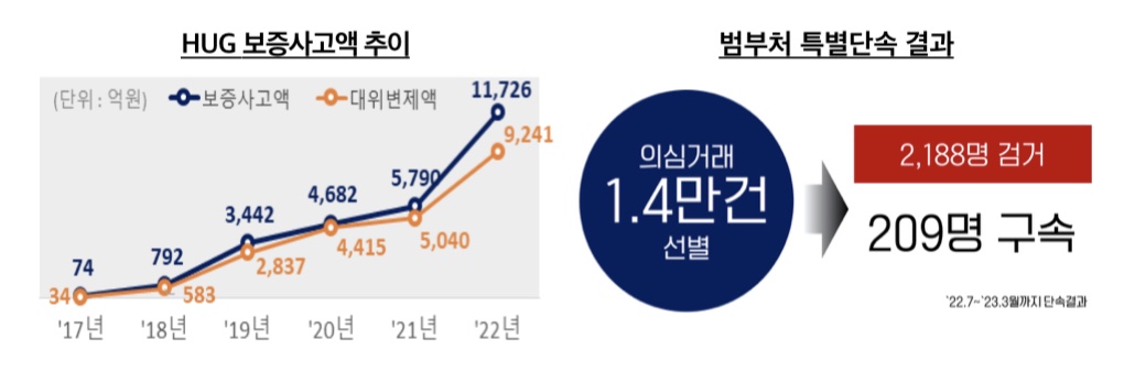 또한 범정부 특별단속(`22.7~`23.7)으로 전세사기 임대인 등 209명이 구속됐습니다.