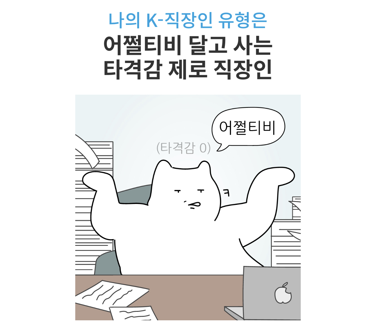 • 회사에서 혼나도 사실 별 타격 없어요. 내 실수면 '내가 잘못했네.' 하고, 남의 실수면 '어쩔티비..'하고 넘기는 편..