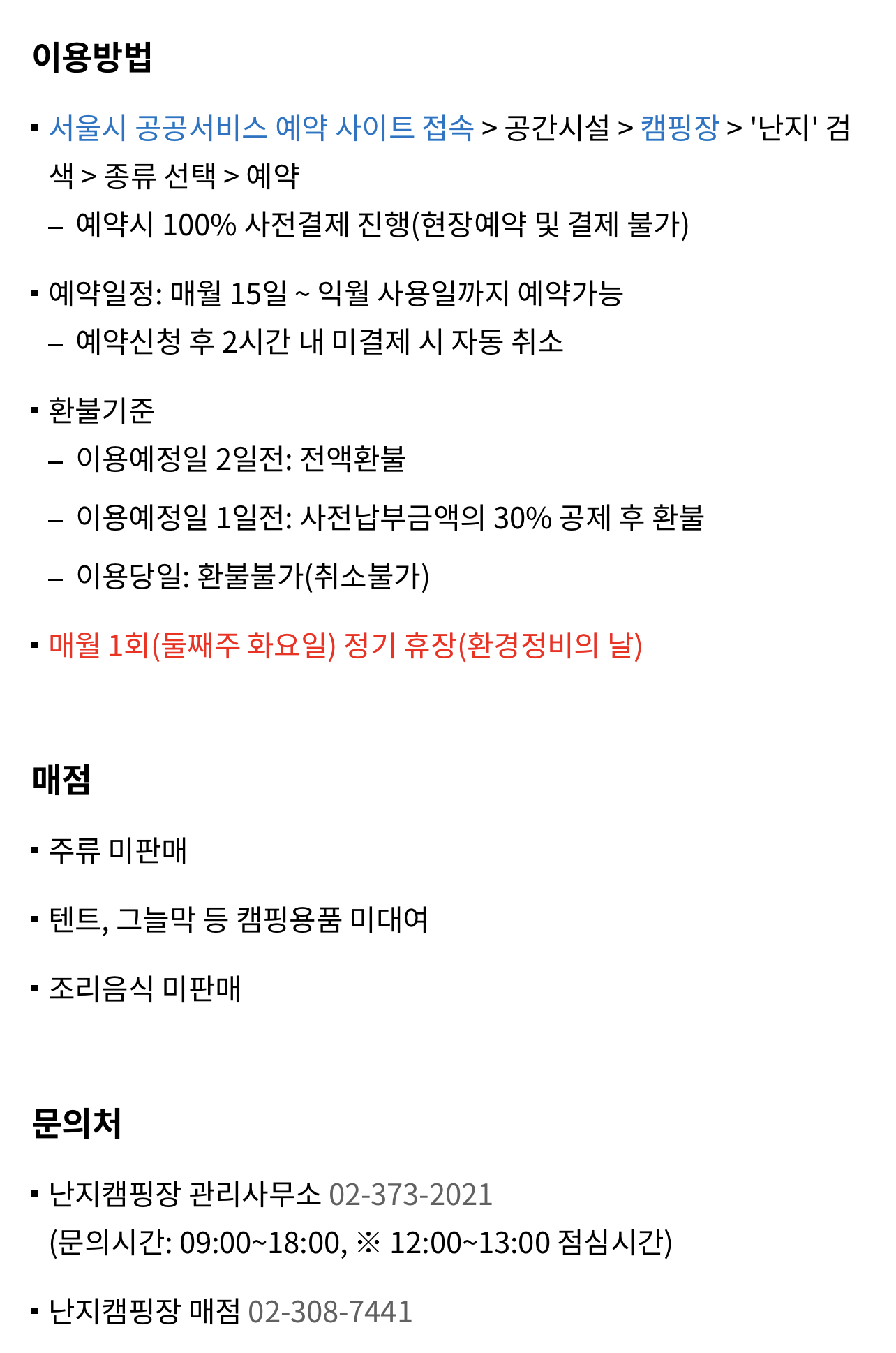 난지캠핑장 관리사무소 02-373-2021