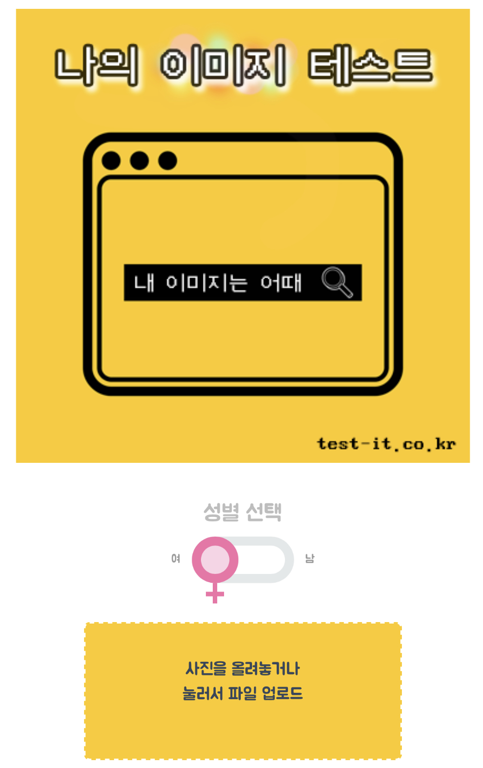 먼저 테스트를 시작하면 성별을 선택하시길 바랍니다.